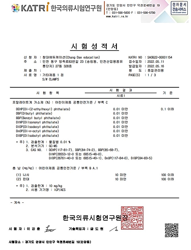kc인증서 또는 시험성적서 자료들 입니다.